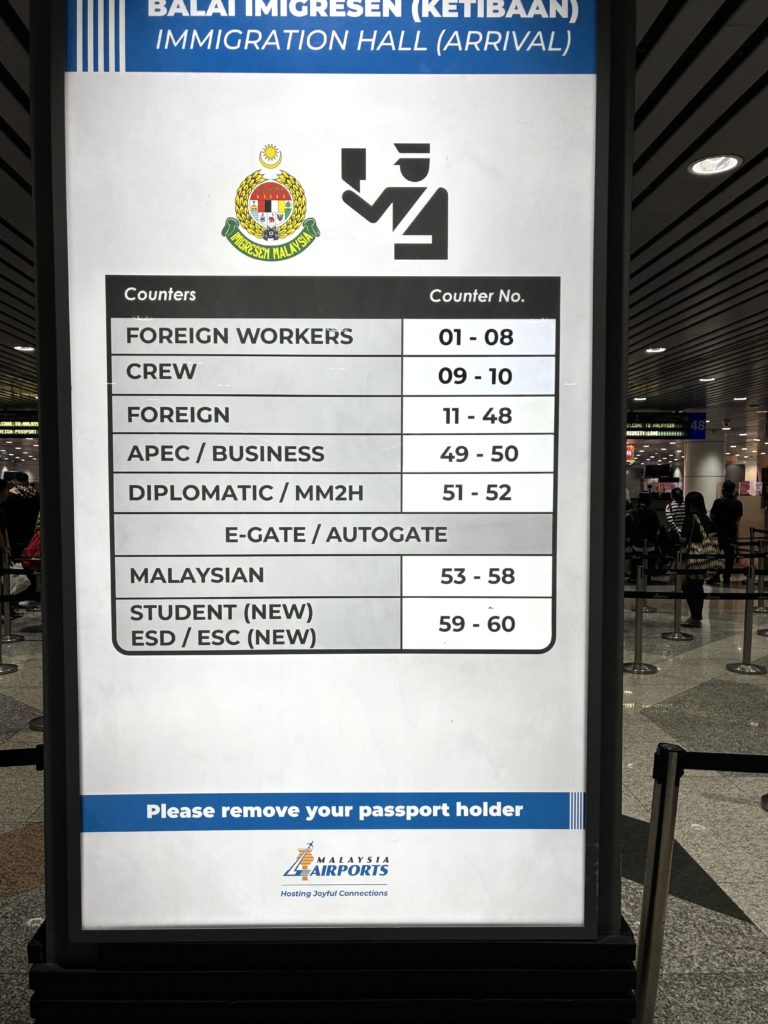 2025年の年末に、プライベート旅行でマレーシアへ遊びに行った際に、マレーシア空港の出国では、一般ゲートで自動化ゲート(Automated Gate / e-Gate)が利用できました。