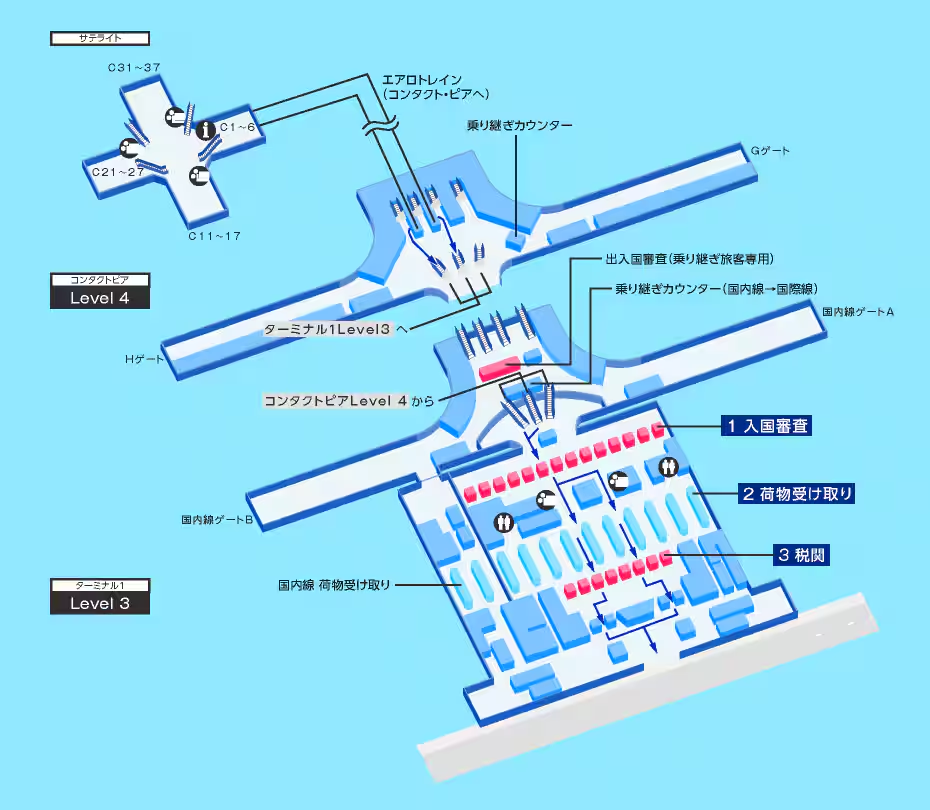 ※空港や時間帯、運用変更で手順や混雑状況は変わることがあるため、時間にゆとりをもって、当日は現地案内に従ってください。