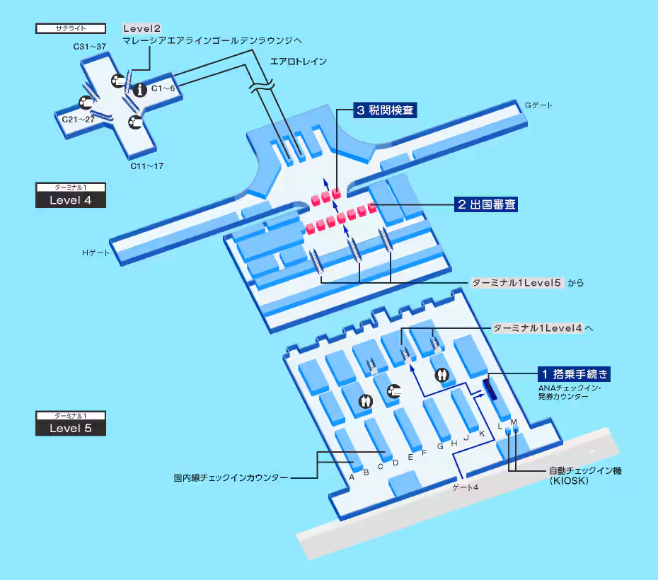 出国時の流れ マレーシア・クアラルンプール国際空港(KLIA1)