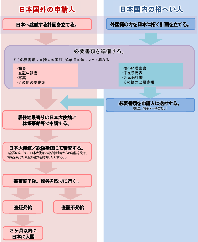 通常のビザ申請では出入国在留管理局に申請を行いますが、短期滞在の場合は本国の日本大使館・領事館に対してビザ発給の申請を行います。ただし、ビザ免除措置国に該当する場合は、ビザ発給を受ける必要はありません。