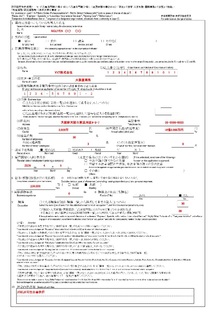 【まず最初に】技人国ビザ変更の記載例(サンプル)をご覧ください