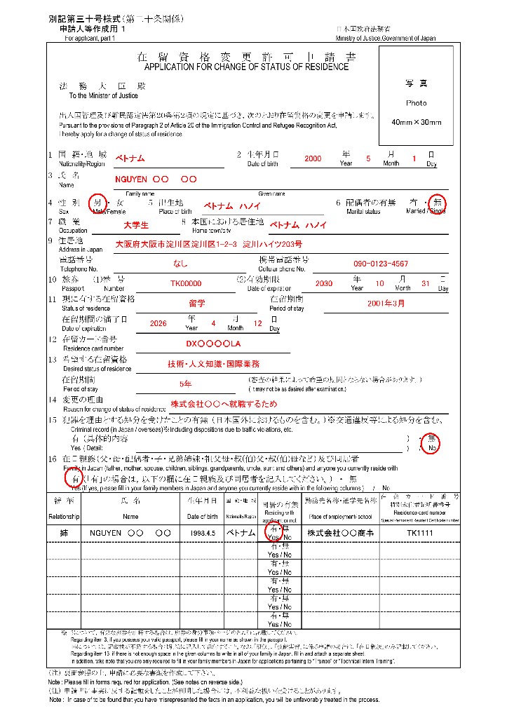 Q1. 在留資格変更許可申請書は、留学生本人だけで書いても大丈夫ですか?